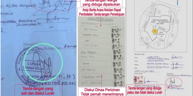 Kendati upaya pihak pengusaha untuk memalsukan dena dengan membuat berkas baru (Karena pada dena yang pertama terdapat tanda-tangan warga yang dipalsukan, lalu diganti dengan dena lokasi baru) sudah dikira sangat tepat, namun sayangnya, saat dikonfirmasi kepada Lurah Bandar Agung Fatra Hayati, SE dengan tegas mengatakan bahwa dirinya tidak pernah bertanda tangan di dena lokasi yang kedua.