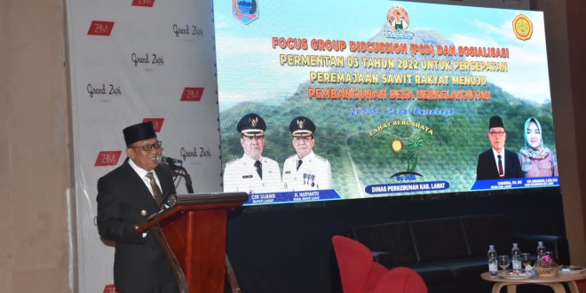 LAHAT, LhL -Bertempat di hotel Grand Zuhri Kabupaten Lahat, diadakannya acara focuss group discussioan (FGD) dan sosialisasi Permentan 03 tahun 2022 untuk percepatan peremajaan sawit rakyat menuju pembangunan desa berkelanjutan, Senin (19/09/2022).