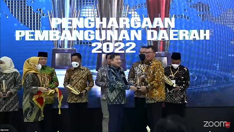 Penghargaan perencaan pembangunan daerah dinilai dari aspek dokumen rencana kerja pemerintah daerah proses penyusunan RKPD, Pencapaian Pembangunan Daerah, Serta Inovasi program daerah.