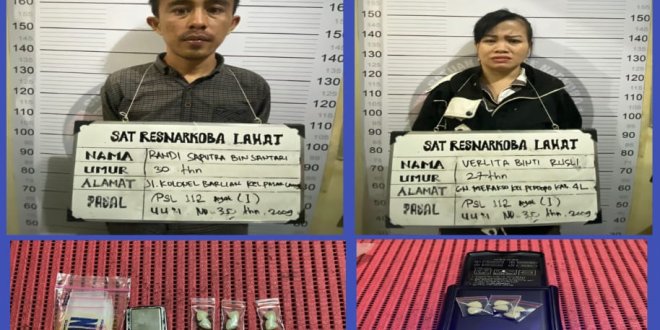 LAHAT, LhL – Berdasarkan informasi dari masyarakat bahwa dialamat Dusun III No. 217 Desa Manggul Kecamatan Lahat Kabupaten Lahat, Sumatera Selatan, sering terjadi transaksi barang haram narkoba jenis Sabu-sabu dan Ekstasi. Atas info tersebut, akhirnya Kapolres Lahat AKBP Eko Sumaryanto SIK. M.Si melalui Kasat Narkoba Polres Lahat AKP M. Romi mengerahkan anggotanya yang tergabung dalam Team Walet untuk melakukan penangkapan terhadap Randi S dan Verlita yang namanya telah dikantongi Team Walet. Penangkapan terhadap terduga pengedar barang haram ini dilaksanakan pada Rabu (21-12-2002) sekira jam 01.30 Wib.