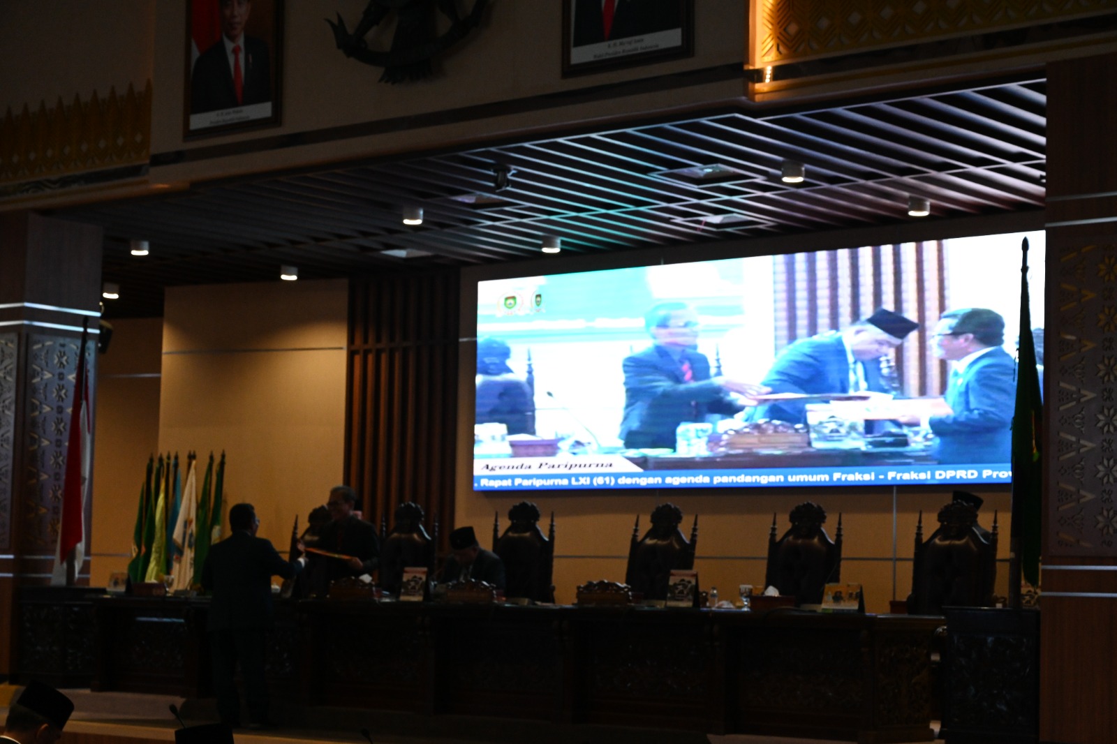 Rapat Paripurna LXI (61) Lanjutan dengan Agenda Penyampaian Pandangan umum Fraksi-fraksi atas Penjelasan Gubernur Sumsel terhadap 4 (empat) Raperda Prov.Sumsel dipimpin oleh Wakil Ketua DPRD Prov. Sumsel; H.M. Giri Ramanda N Kiemas, SE, MM didampingi oleh Wakil Gubernur Sumsel; H. Mawardi Yahya, Plt. Sekretaris DPRD Prov. Sumsel; H. Aprizal, S.Ag, SE, M.Si, Sekretaris Daerah; Ir. S.A.Supriono, dihadiri oleh perwakilan OPD (Organisasi Perangkat Daerah) serta tamu undangan lainnya.