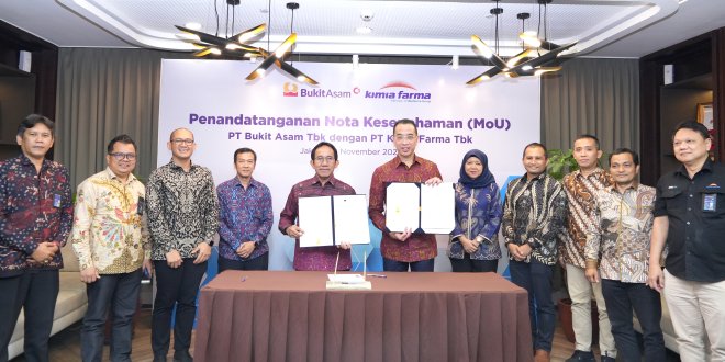 JAKARTA, LhL – PT Bukit Asam Tbk (PTBA) dan PT Kimia Farma Tbk (KAEF) melakukan penandatanganan Nota Kesepahaman (Memorandum of Understanding) untuk menjajaki kerja sama di bidang farmasi dan layanan kesehatan.