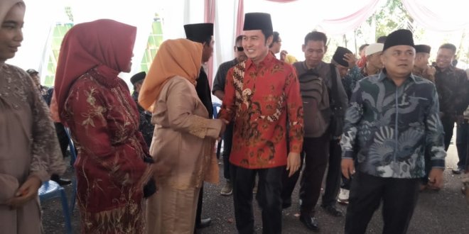 LAHAT, LhL – Penuhi undangan resepsi pernikahan Harits dan Tian di Gedung Kesenian Kota Lahat, Yulius Maulana disambut hangat oleh keluarga kedua memoelai berserta para tamu undangan lainnya, Sabtu (20/07/2024).