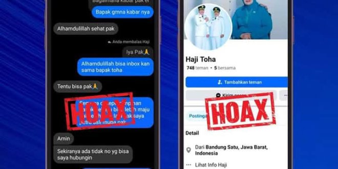 MUBA, LhL – Masyarakat diimbau lebih waspada terhadap maraknya penipuan digital. Baru-baru ini beredar akun Facebook mencurigakan dengan nama “Haji Toha” yang menggunakan foto resmi Bupati Musi Banyuasin H. M. Toha, Wakil Bupati Rohman, serta Ketua TP PKK Hj. Patimah Toha. Setelah ditelusuri, akun tersebut dipastikan palsu alias hoaks, Senin (12/5/2025)