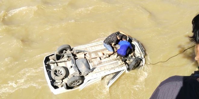 Saat kejadian, sopir minibus sempat terjebak di dalam kendaraan yang sudah berada di sungai.