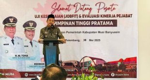 Editor : RON MUBA, LhL – Wakil Bupati Musi Banyuasin, Kyai Rohman, membuka acara Job Fit dan Evaluasi Kinerja Pejabat Pimpinan Tinggi Pratama (PPTP) di Hotel Santika Premiere Bandara Palembang, 30 Mei 2025. Acara ini bertujuan untuk memastikan kesesuaian kompetensi pejabat dengan kebutuhan dan arah pembangunan daerah, serta meningkatkan kualitas …